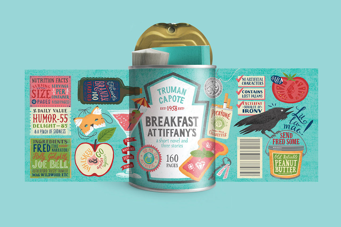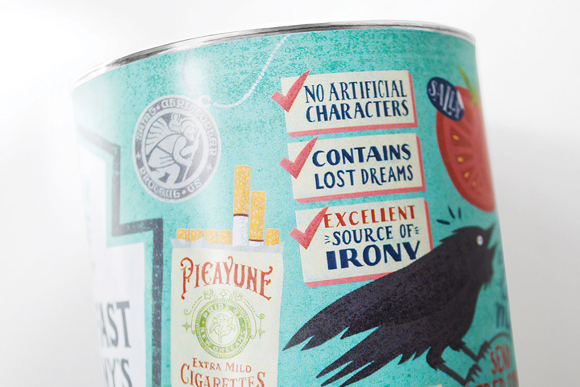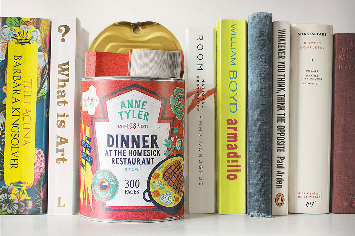 在包裝上你可以發(fā)現(xiàn)書里那些幽默和諷刺的“日常價值”,書的大小厚度正好放進罐頭盒里,就好像每一頁紙張都是小說的一份調(diào)料。