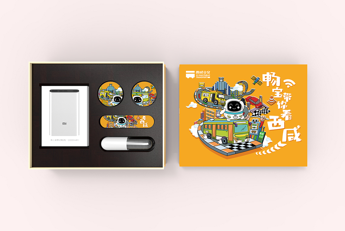 年輕、有趣的插畫形式,個(gè)性的構(gòu)圖方法,使畫面靈動(dòng)有趣,包裝中的每一個(gè)元素和細(xì)節(jié)都富有西咸公交的特色,在傳遞企業(yè)服務(wù)理念的同時(shí)也不失樂(lè)趣。